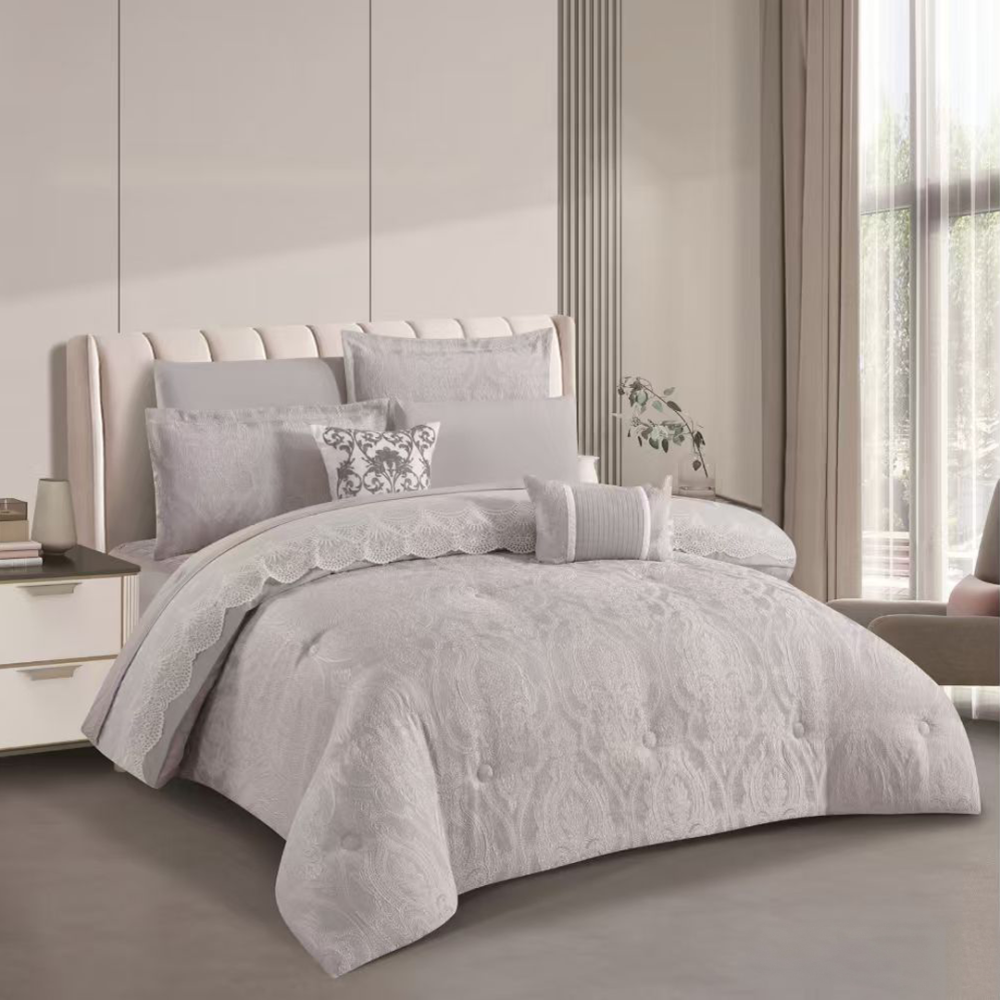 - طقم لحاف قطن يتميز بتطريزات دقيقة تضيف لمسة من الفخامة والأناقة لغرفتك